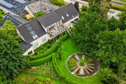 ”Ejendommen består af en større hovedbygning og flere tilknyttede bygninger og kan i praksis opdeles i to selvstændige afdelinger, så der kan afholdes flere arrangementer samtidig. Der er 30 værelser og en stor lejlighed med tagterrasse. Derudover er der flere lyse og rummelige konferencelokaler i forskellige størrelser, loungeområder, bibliotek, pejsestue og en stor spisesal med udsigt til haven samt fuldt udstyret industrikøkken. Bygningerne fremstår velholdte med respekt for de oprindelige arkitektoniske detaljer og byder på en harmonisk blanding af klassisk stil og moderne funktionalitet.”