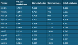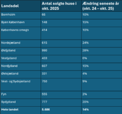 ”Samtidig er oktober-salget i Nordjylland, Østjylland og Sydjylland også i top-10 over alle måneder med flest solgte huse i statistikken. Det bekræfter billedet af, at den stigende handelsaktivitet fordeler sig bredt udover landet.”