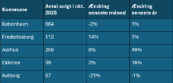 ”Salget af ejerlejligheder fortsætter i det høje tempo, som har præget det meste af 2025, og de mange handler gælder i flere af de største byer. Københavns Kommune ligger nogenlunde på niveau med oktober sidste år, hvor oktober også var måneden med flest salg. Og i Aarhus ser vi en stor fremgang i salget på 49% sammenlignet med samme måned sidste år.”