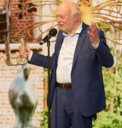 ”Årets æresprismodtager har siden slutningen af 70’erne insisteret på, at kunst og erhverv ikke er modsætninger – men forstærker hinanden. At økonomisk succes ikke blot omsættes til tal på bundlinjen, men til kunst og kultur. Her er kunsten ikke pynt. Den er en del af virksomhedens DNA. En del af overskuddet er – gennem en fond – blevet forvandlet til kunst, til byrum, til oplevelser og sågar til en kunstpris. Særligt én by har nydt godt af denne vision. Varde – æresprismodtagerens hjemby, som er blevet forvandlet til et åbnet kunstlandskab. Her kræver kunst ikke billet. Den er for alle.”